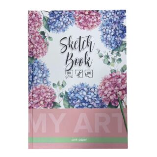 Блокнот состоит из рисовальной бумаги (не офсетной) белого цвета плотностью 180г/м2. Пружина слева и основание из жесткого картона служат для удобства рисования. Яркая обложка из картона выполнена в стилизации с акварельным рисунком.